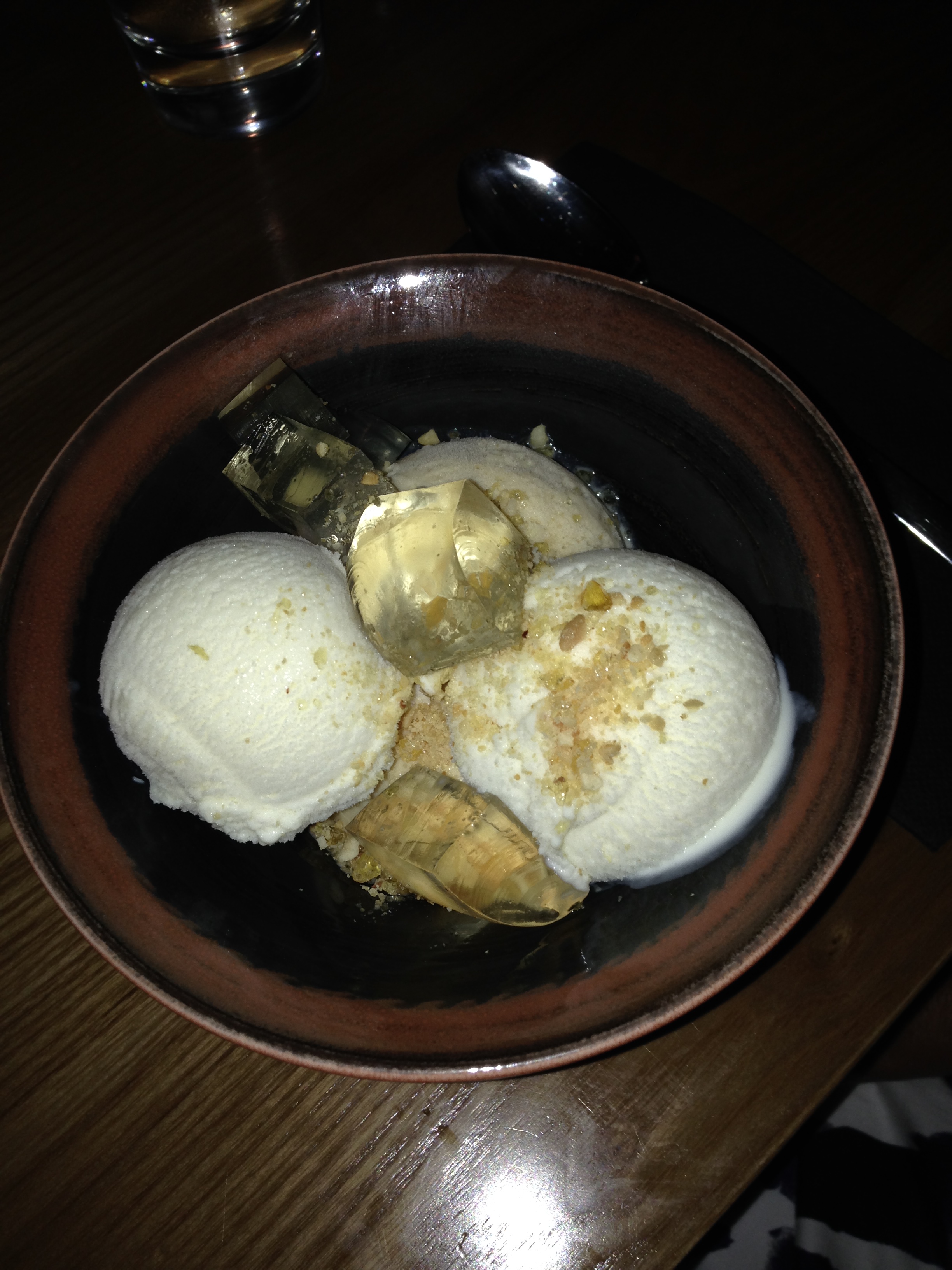 Being lunch we didn’t have dessert but, in need of a birthday “cake”, Brandon arrived with one helping of their excellent Budino di Datteri (Sticky date pudding, vanilla poached pear, ginger ice cream, hot caramel, pistachio crumb) with one lit candle and 6 spoons – perfect. That is a stand out dish and my attempt to sneak a second spoonful was met by a stern frown from Rebecca,….and Deb.